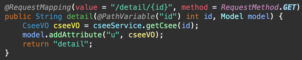 - @RequestMapping(value="/detail/{id}", method=RequestMethod.GET)